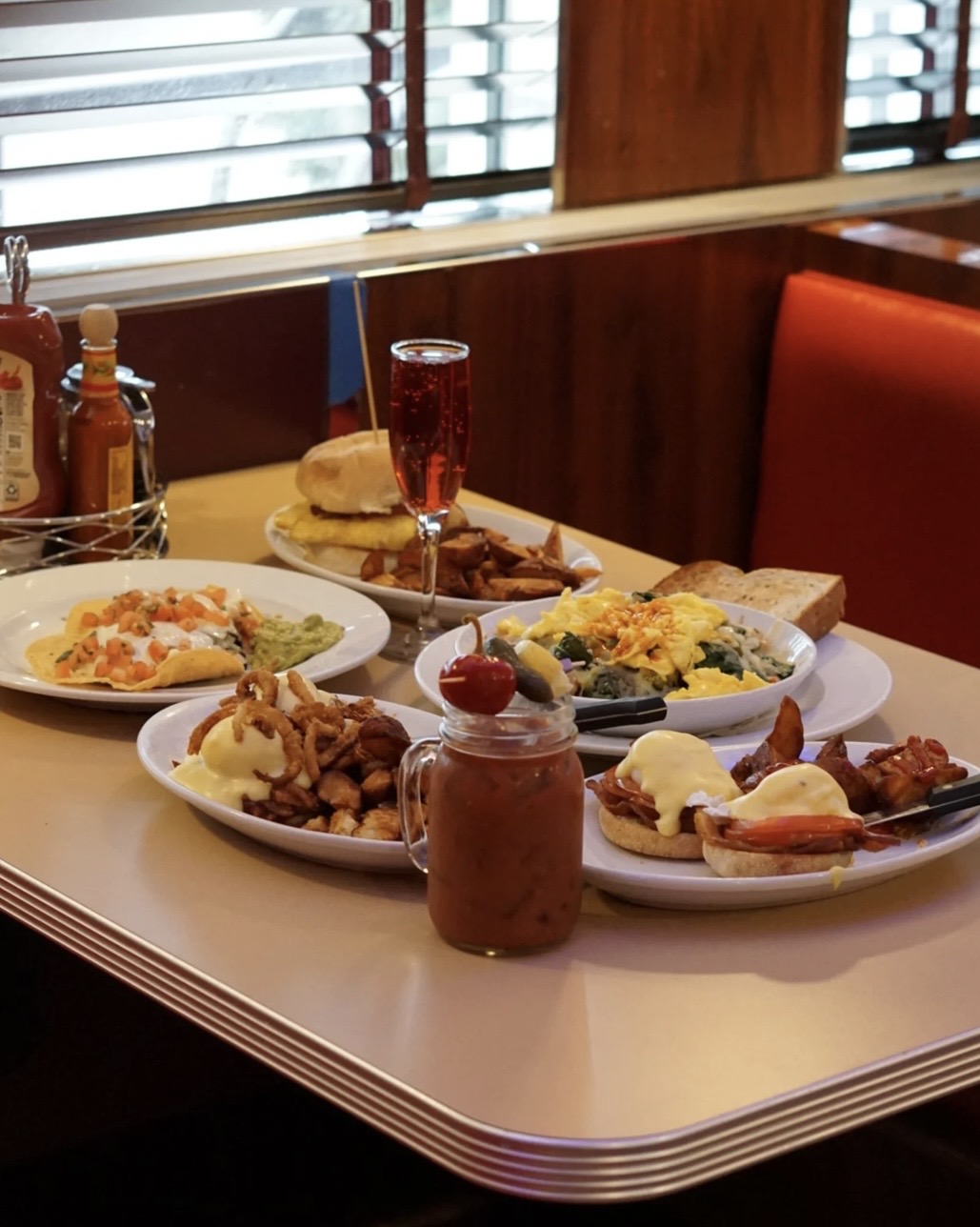 When you walk in, it feels like you are stepping back in time. It’s a great vibe and retro feel. There are blue and red neon lights around the diner. When the amazing waiter brings you to the table, you will be greeted with a nice red and black booth or black chair or stools, accompanied by a chrome wrapped and fake wood grain table. The building from the outside is chrome wrapped with the same red and blue lights that were inside.